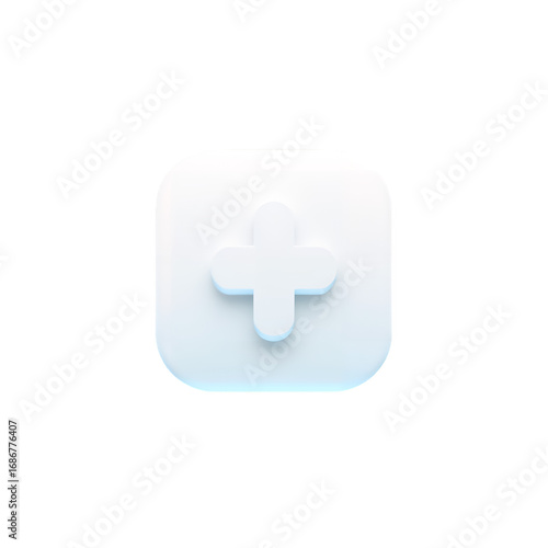 Fototapeta premium Rounded square button with a raised white plus sign icon subtle light blue...