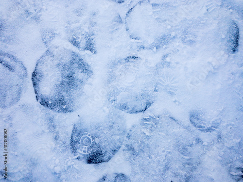 © Piotr, Obraz premium Rounded wood blocks covered with snow background