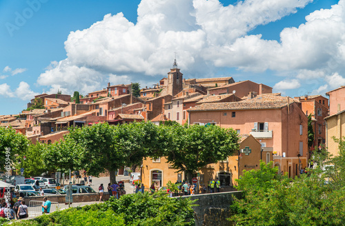 © Manel Vinuesa, Obraz premium Roussillon, Vaucluse - France - July 11 2021: Close-up views of the ocher color of the village of Roussillon.