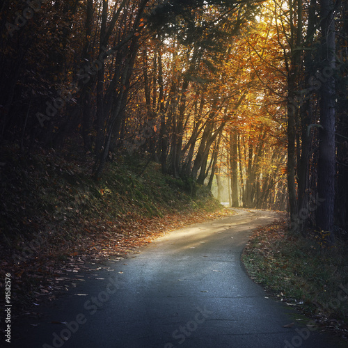© Samuel Moulin, Obraz premium route disparaissant dans une forêt automnale