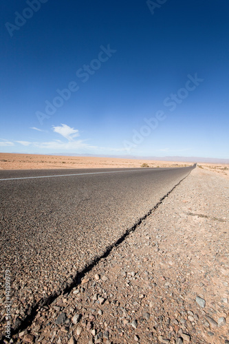 © plprod, Naklejka premium route droite au milieu d'un désert de sable