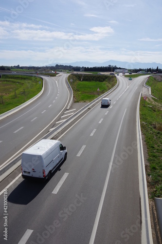 © Ourson+, Fototapeta premium Route et échangeurs d'autoroutes avec voiture