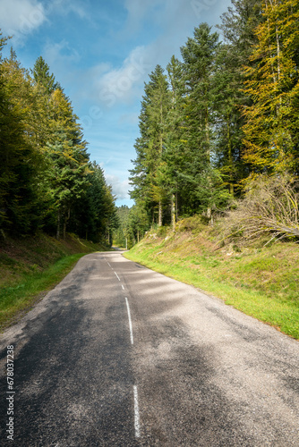 Fototapeta premium route forestière au milieu de la forêt de sapins des Vosges