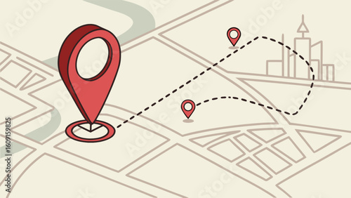 Fototapeta premium Route map with pin markers for navigation and travel planning showing destination and direction guidance system