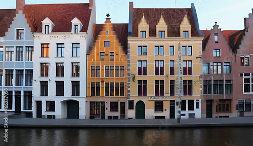 © Galeno, Fototapeta premium row colorful houses bruges canals houses roofs