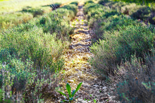 Obraz premium row field of thyme during spring