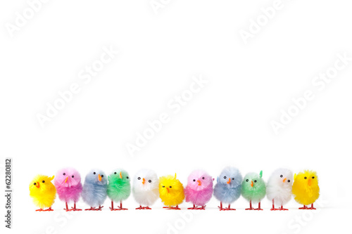 © oliophotography, Naklejka premium Row of artificial easter chicks