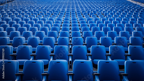 © mister, Fototapeta premium row of blue stadium chairs, empty seats