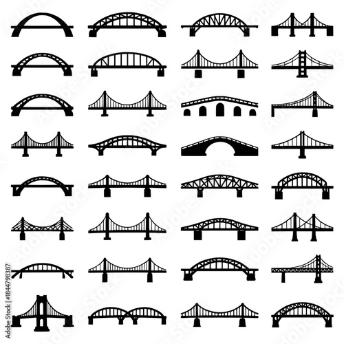 Fototapeta premium Row of Bridge Silhouettes: Architectural Bridge Designs in Black and White