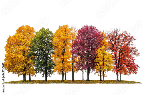 © Lazy_Bear, Naklejka premium Row of colorful autumn trees isolated on transparent background. Fall season