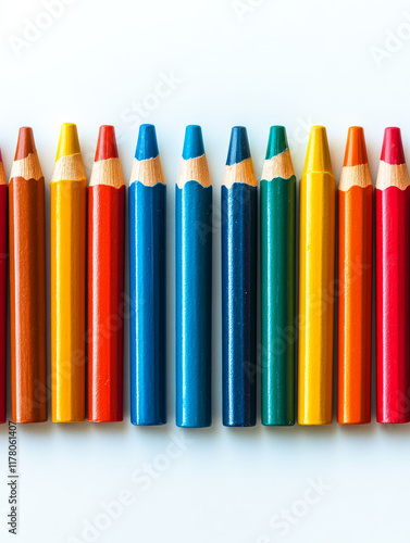 Fototapeta premium Row of colorful pencils in a neat arrangement.