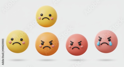 © Khofi, Fototapeta premium Row of Emoticon Orbs: Sadness Turns to Anger, Illustrated.