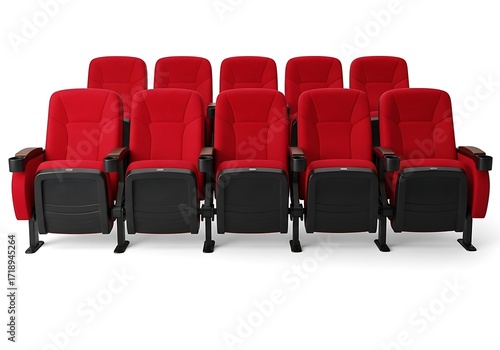 © AL, Fototapeta premium Row of empty red cinema theater seats with cup holders isolated on white background