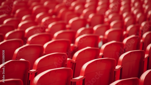 © alexkich, Fototapeta premium Row of empty red seats at stadium