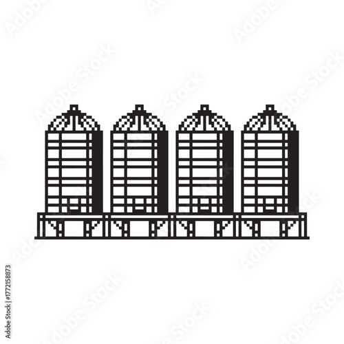 © MUZIHID CREATION, Fototapeta premium Row of four industrial grain silos on a platform