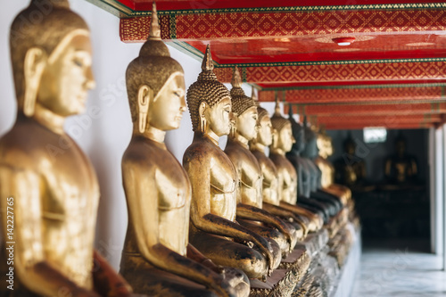 © GVS, Fototapeta premium Row of Golden Buddha in Thailand