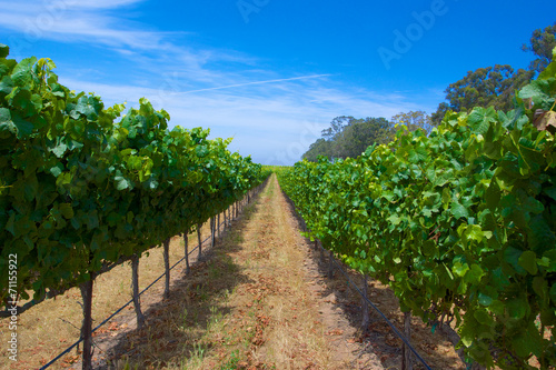 © kenkistler1, Fototapeta premium Row of Green Grapes Vineyard