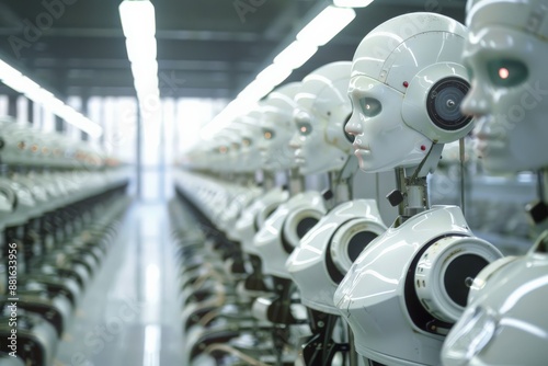© KP, Fototapeta premium Row of Humanoid Robots in a Factory.