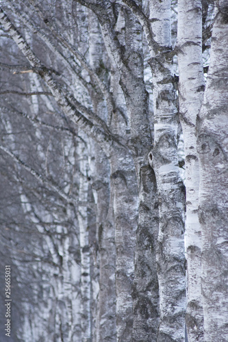 © jezophotography, Obraz premium Row of Japanese White Birch in winter