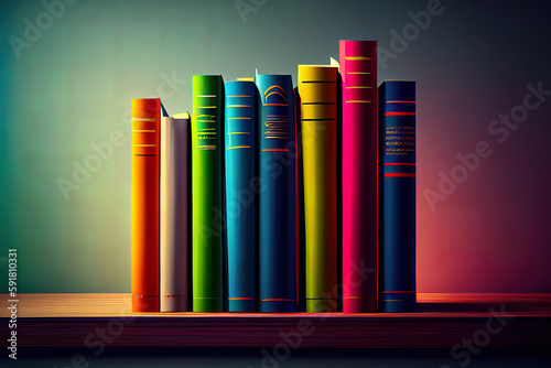 © Mukhlesur, Naklejka premium Row of of colorful books on background. Generative Ai