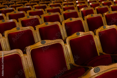 © Ruslan, Fototapeta premium Row of red seats in theatre