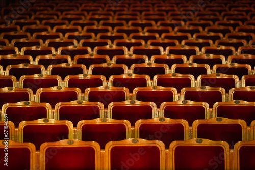 © Ruslan, Fototapeta premium Row of red seats in theatre