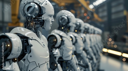 © MIKHAIL, Fototapeta premium Row of Robots in Factory
