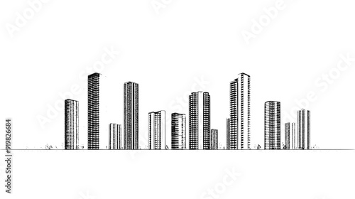 Fototapeta premium Row of skyscrapers with uniform height, creating a continuous line against the sky, vector illustration art