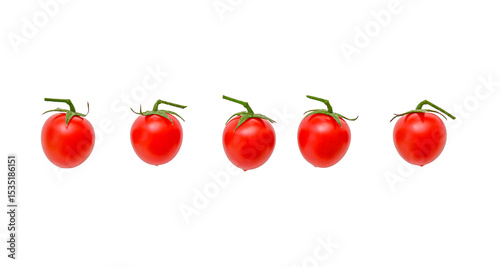 Fototapeta premium Row of small Cherry tomatoes isolated on white, clipping path, PNG