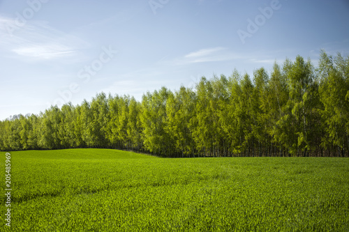 © darekb22, Obraz premium Row of trees behind the green field