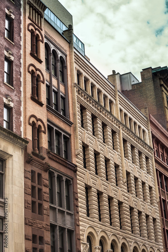 Fototapeta premium Row of vintage New York City apartment buildings in a variety of brick and...