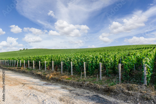 Obraz premium Row vine grape in champagne vineyards at montagne de reims