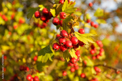 Obraz premium Rowan tree at autumn forest
