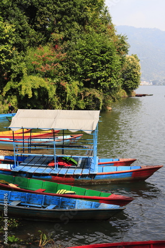 © Rudolf Tepfenhart, Fototapeta premium Rowboats at the Phewa lake