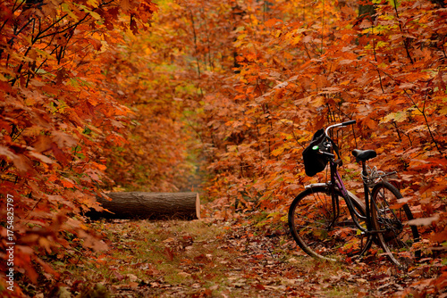 © Hanna, Fototapeta premium Rower w jesiennym lesie
