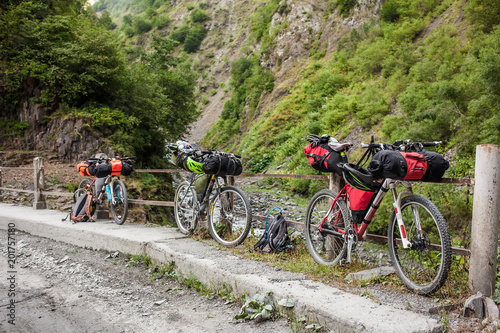 Naklejka premium Rowery górskie przygotowane podczas dalekich podróży