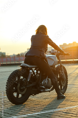 © Kaponia Aliaksei, Fototapeta premium Rowerzysta Kobieta na motocyklu