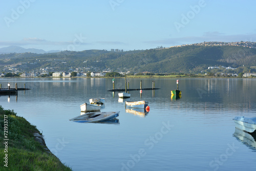 © Louis Taljaard, Obraz premium Rowing bouts on water with reflection