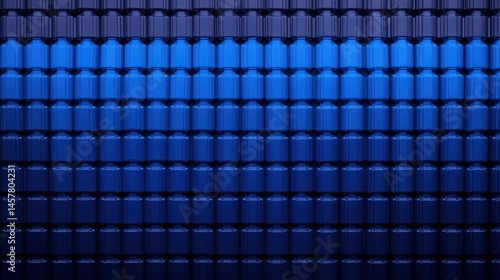 Fototapeta premium Rows of blue plastic bottles neatly arranged, creating a repetitive...