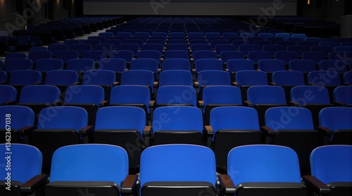 Fototapeta premium Rows of blue seats in an empty auditorium awaiting a presentation or performance