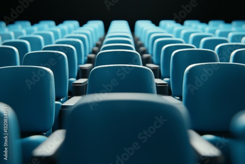 Fototapeta premium Rows of blue theater seats arranged in a symmetrical pattern