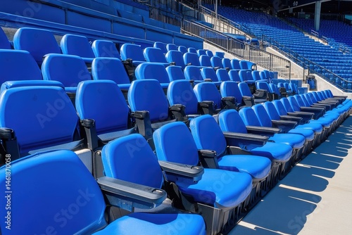© Abdi, Naklejka premium Rows of bright blue stadium seats