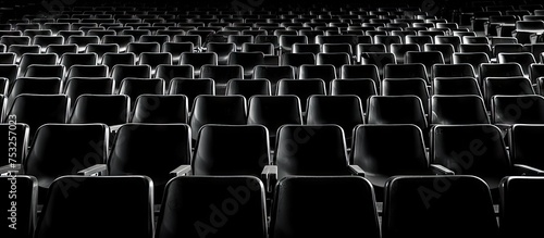 © vxnaghiyev, Naklejka premium Rows of Empty Chairs in a Silent Auditorium Waiting for an Audience