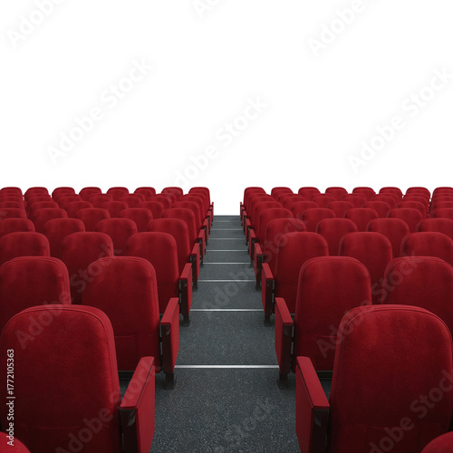 © Adi, Obraz premium Rows of empty red seating in a darkened theater or auditorium create symmetry