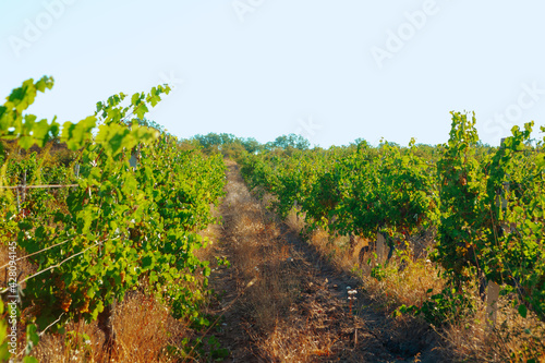 Fototapeta premium Rows of grapes growing in a vineyard