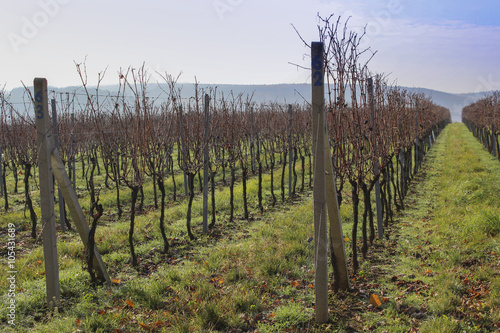 © lukin77, Fototapeta premium Rows of harvested grape vineyard