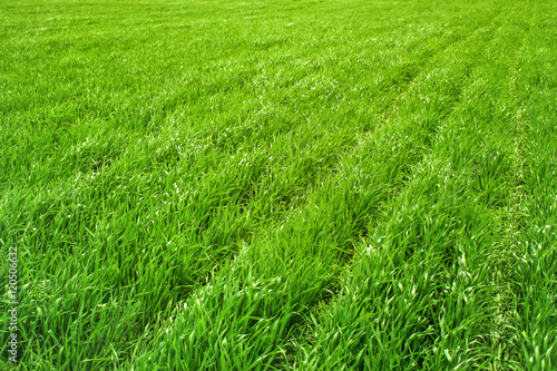 © valkoinen7, Obraz premium rows of planted grass on the field