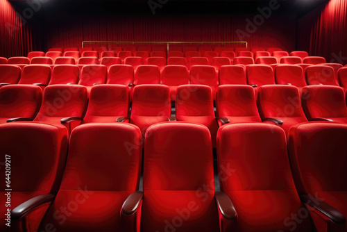 © Andrii , Fototapeta premium Rows of Red Seats: Theater Awaits