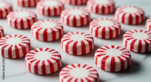 © Wahyu, Obraz premium Rows of round, red and white striped hard candies