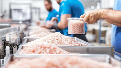 Fototapeta premium rows of salt mounds reflecting in thin water layer covering Salar de Uyuni